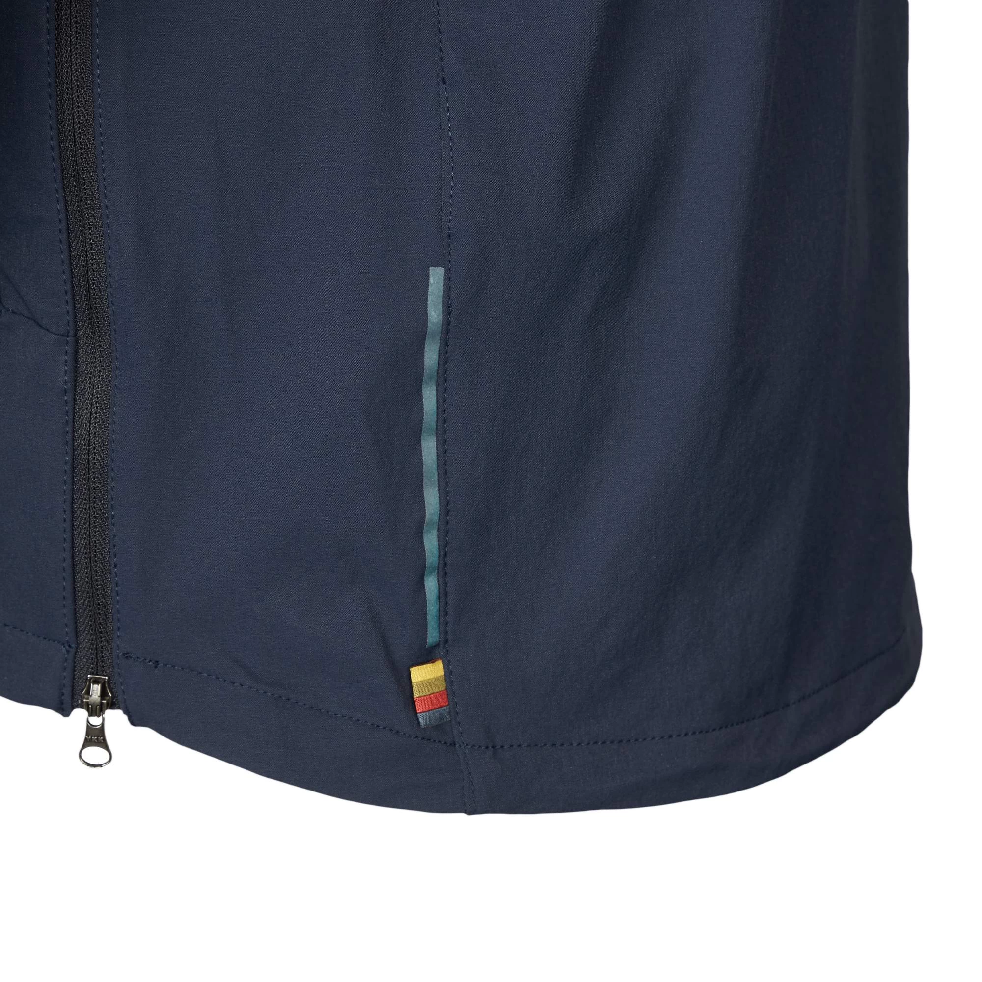 Das gibt der Jacke auf dem Rad einen perfekten Sitz und auch auf langen Etappen ein stets angenehmes Klima. Lange 2-Wege-Reißverschlüsse seitlich am Rumpf erleichtern das Hineinschlüpfen in den S/F Räven Anorak M und dienen der Ventilation unterwegs, wenn es dir doch mal zu warm wird. Das elastische Nylonmaterial am Bauch hält dir kühlen Fahrtwind vom Leib. Den Stehkragen kannst du schützend hoch mit einem RV zuziehen; der Kragen beherbergt auch die dünne, einstellbare Kapuze, die prima unter deinen Fahrradhelm passt.